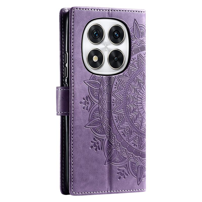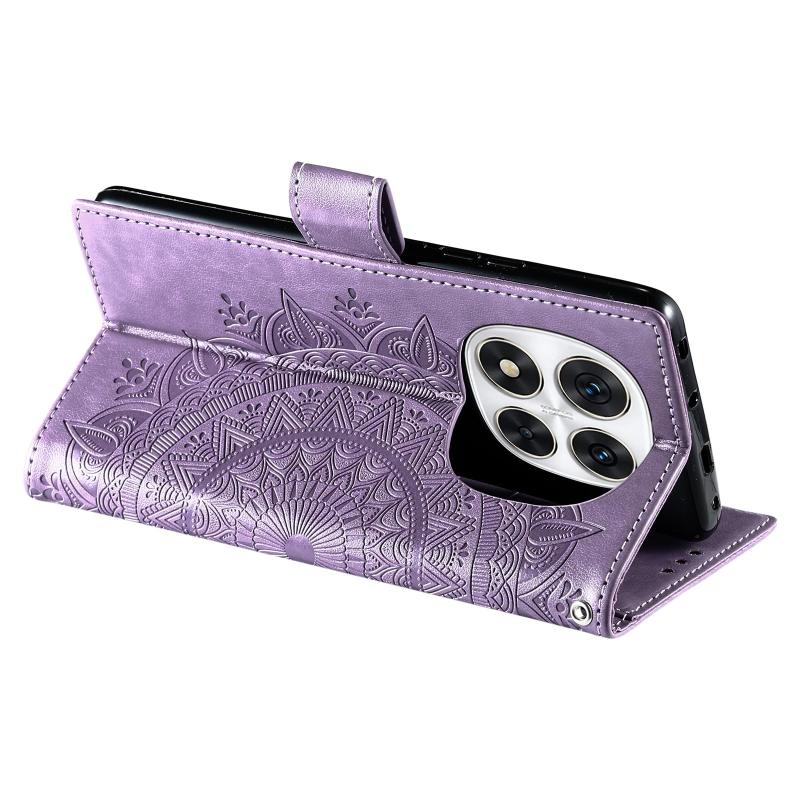 For Redmi Note 14 Pro 4G Totem Flower Embossed Leather Phone Case with Lanyard(Purple)