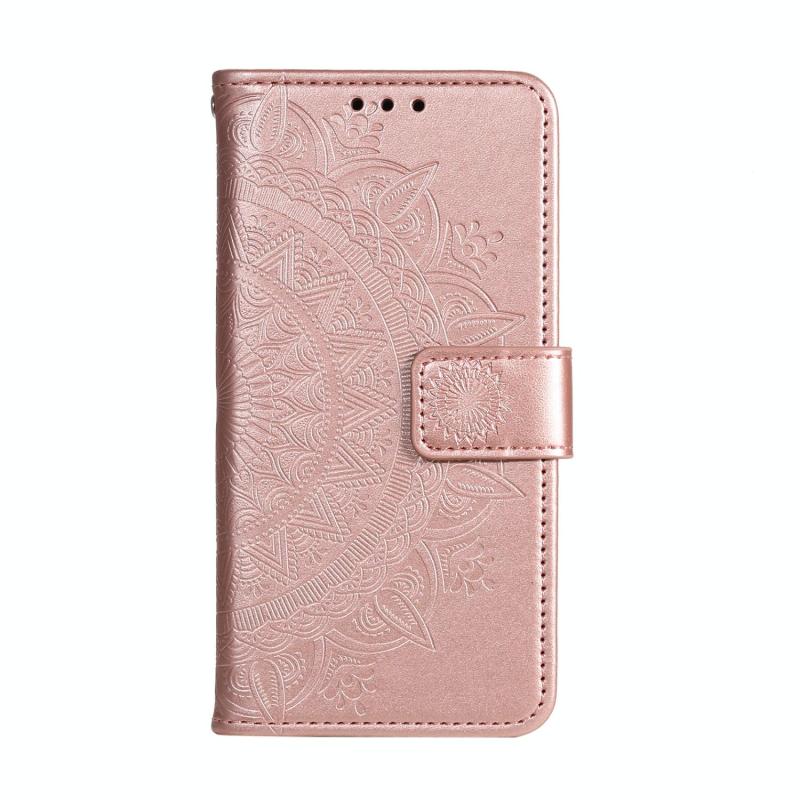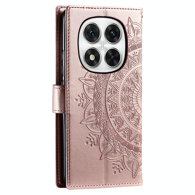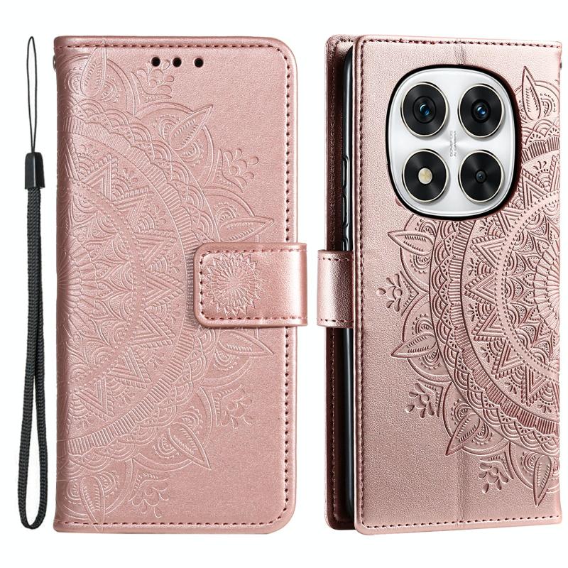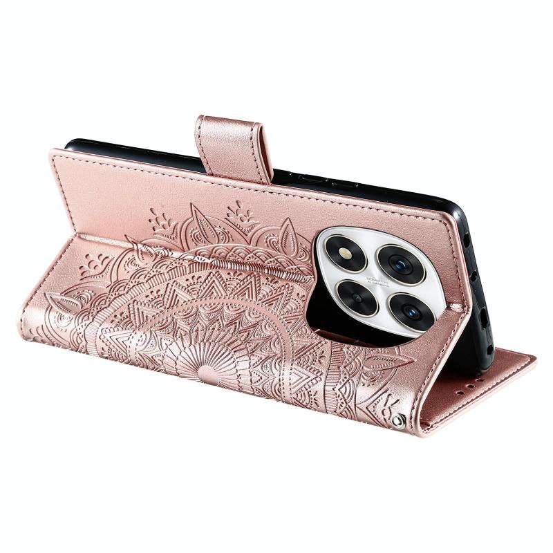 For Redmi Note 14 Pro 4G Totem Flower Embossed Leather Phone Case with Lanyard(Rose Gold)