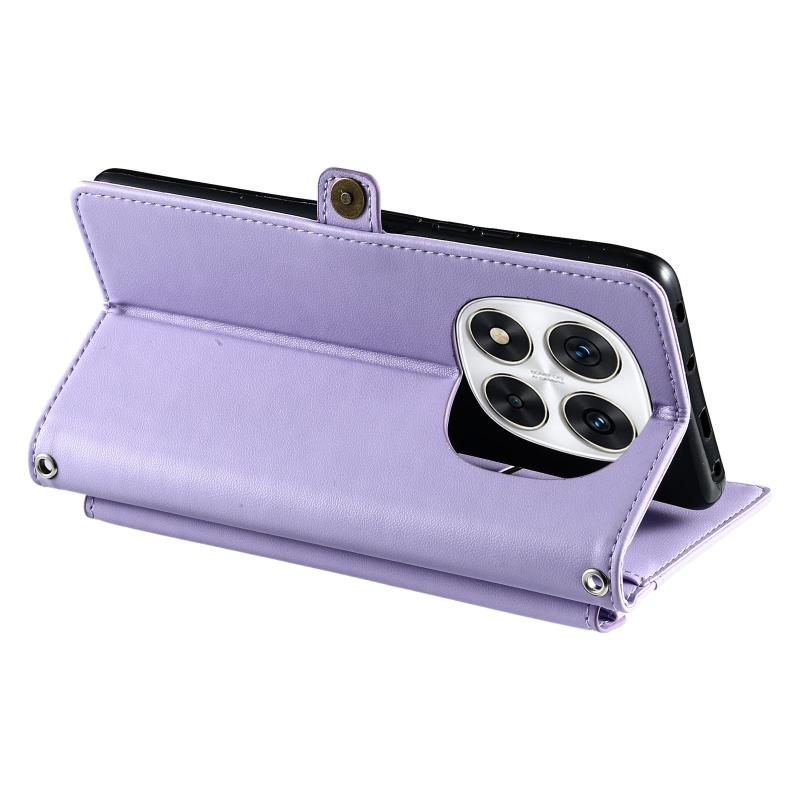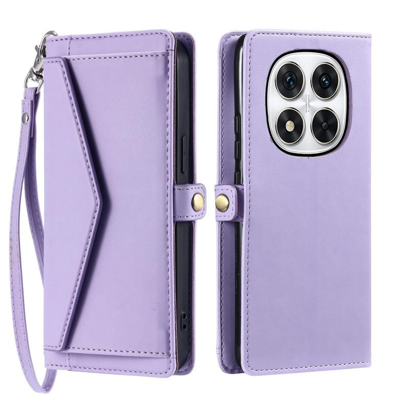 For Redmi Note 14 Pro 4G Wallet Multi-card Slot Leather Phone Case with Lanyard(Purple)