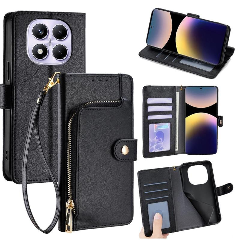 For Redmi Note 14 Pro 4G Zipper Bag Leather Phone Case(Black)