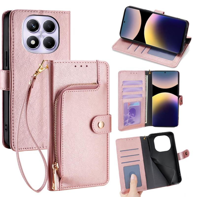 For Redmi Note 14 Pro 4G Zipper Bag Leather Phone Case(Rose Gold)