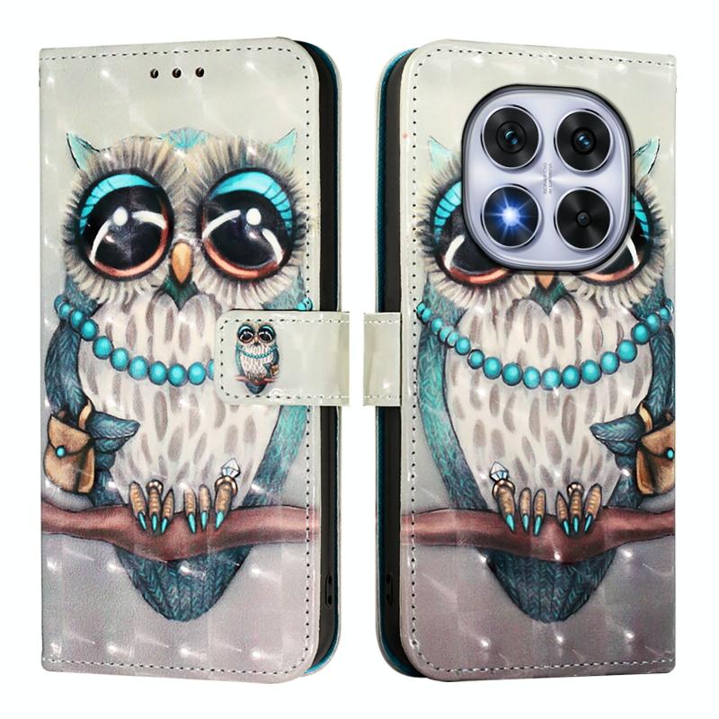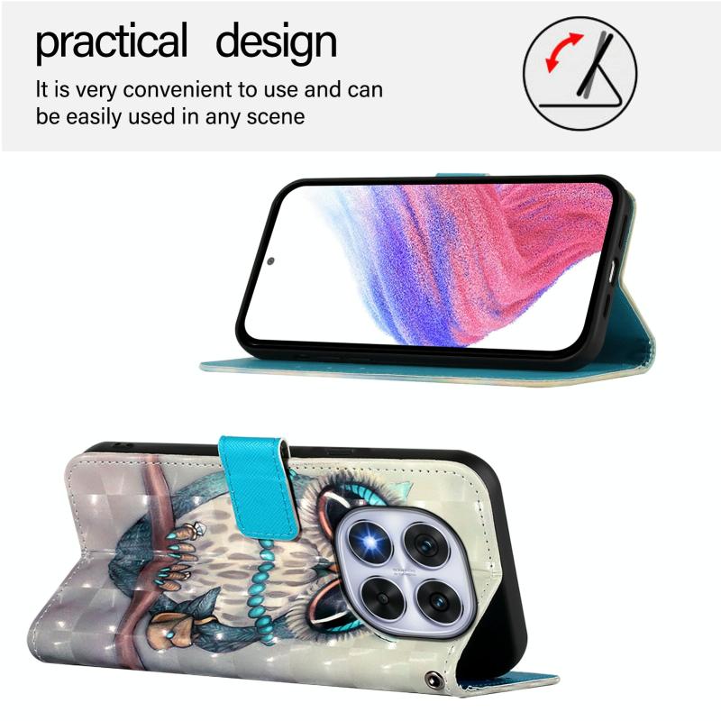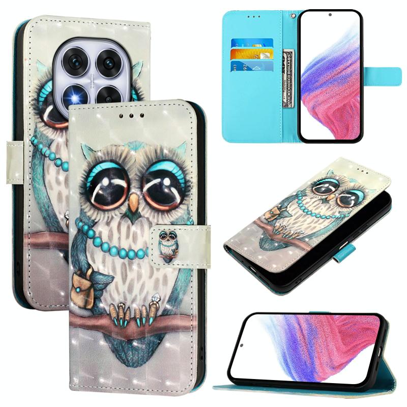 For Redmi Note 14 Pro 5G / 14 Pro+ 5G 3D Painting Horizontal Flip Leather Phone Case(Grey Owl)