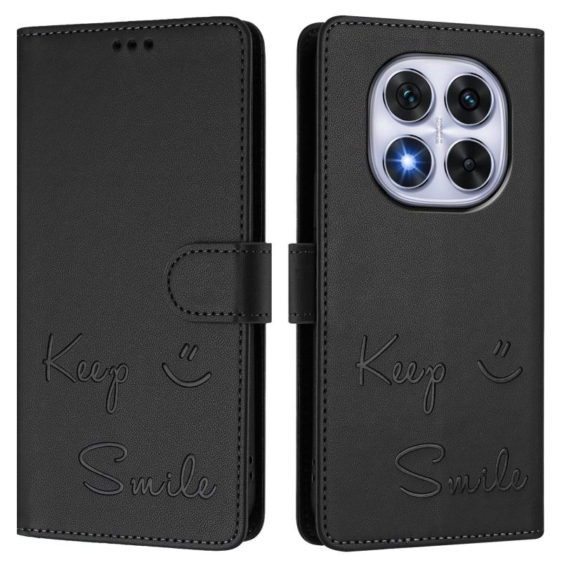 For Redmi Note 14 Pro 5G / 14 Pro+ 5G Smile Embossing RFID Leather Phone Case(Black)