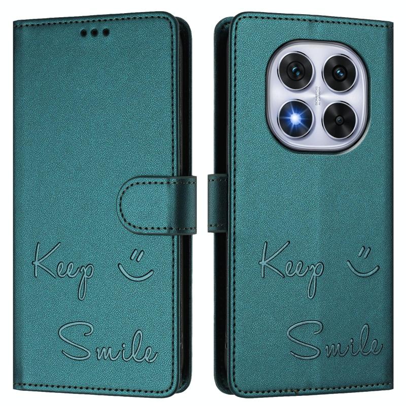For Redmi Note 14 Pro 5G / 14 Pro+ 5G Smile Embossing RFID Leather Phone Case(Peacock Green)