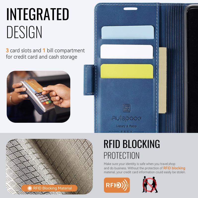 For Redmi Note 14 Pro 5G AutSpace A11 Side Buckle MagSafe Magnetic RFID Phone Leather Case(Blue) (AutSpace)