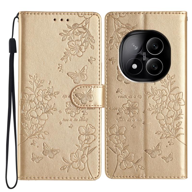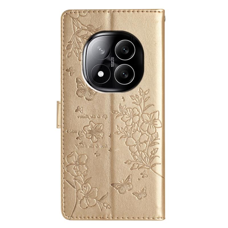 For Redmi Note 14 Pro 5G Butterflies and Flowers Leather Phone Case(Gold)