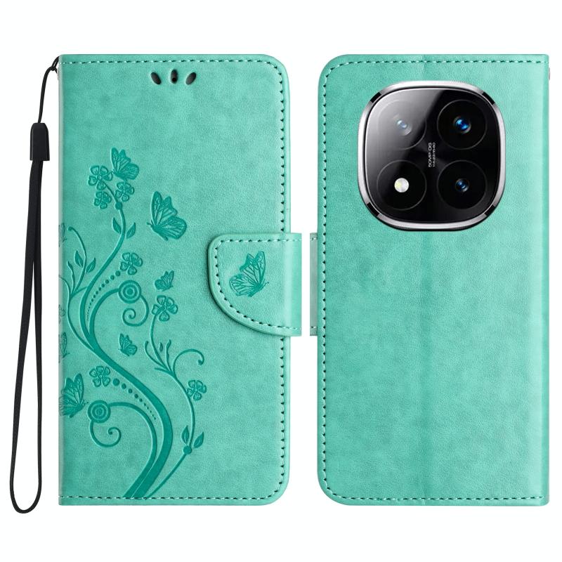 For Redmi Note 14 Pro+ 5G Butterfly Flower Pattern Flip Leather Phone Case(Green)