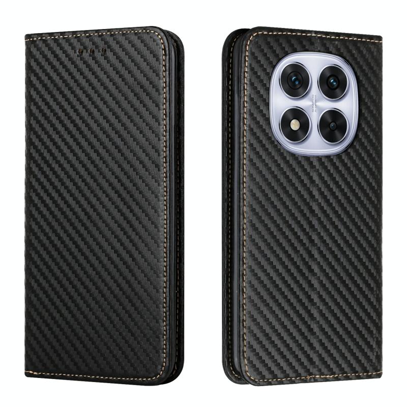 For Redmi Note 14 Pro 5G Carbon Fiber Texture Magnetic Flip Leather Phone Case(Black)