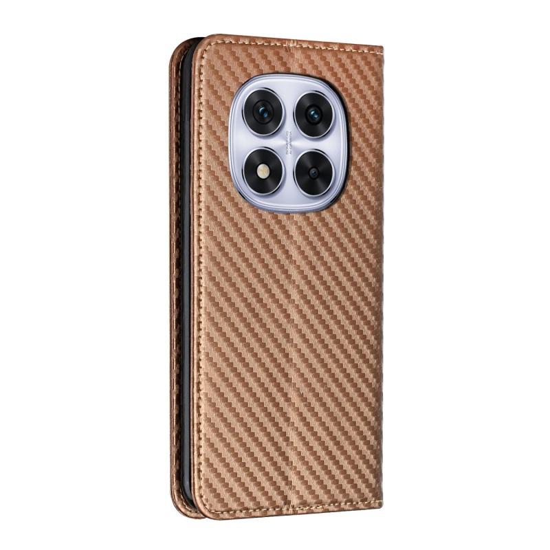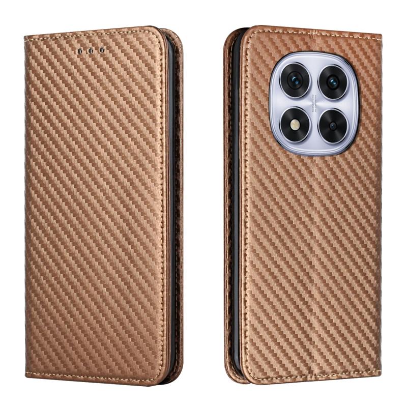 For Redmi Note 14 Pro 5G Carbon Fiber Texture Magnetic Flip Leather Phone Case(Brown)