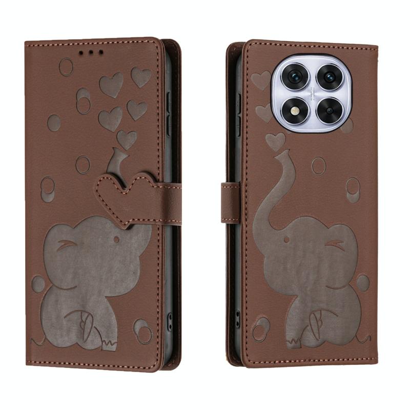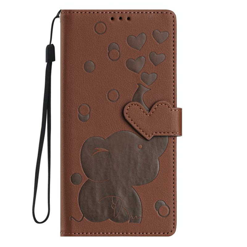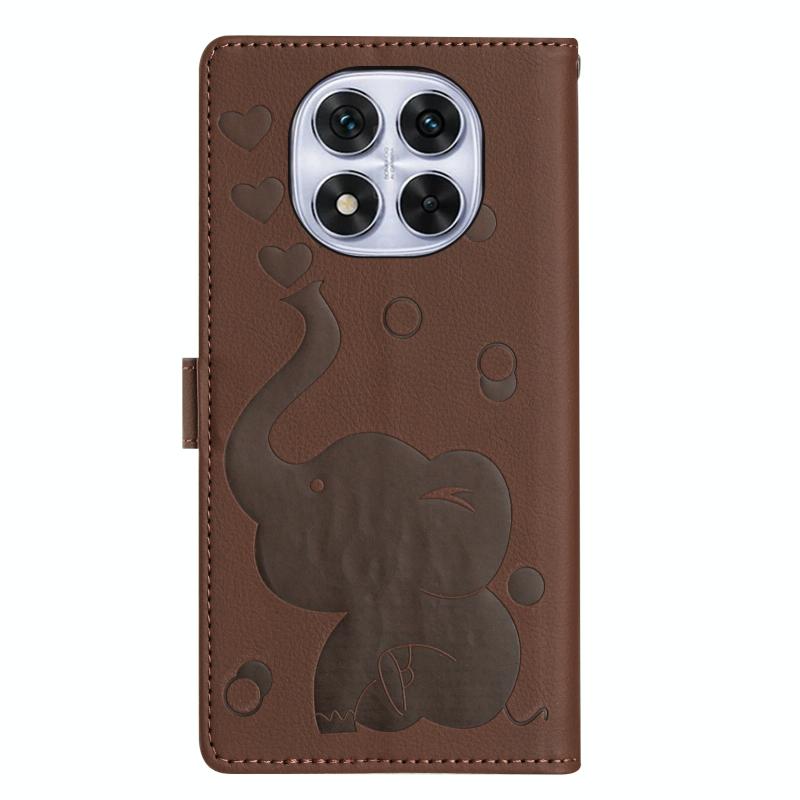 For Redmi Note 14 Pro 5G Cartoon Elephant Embossed Leather Phone Case(Brown)