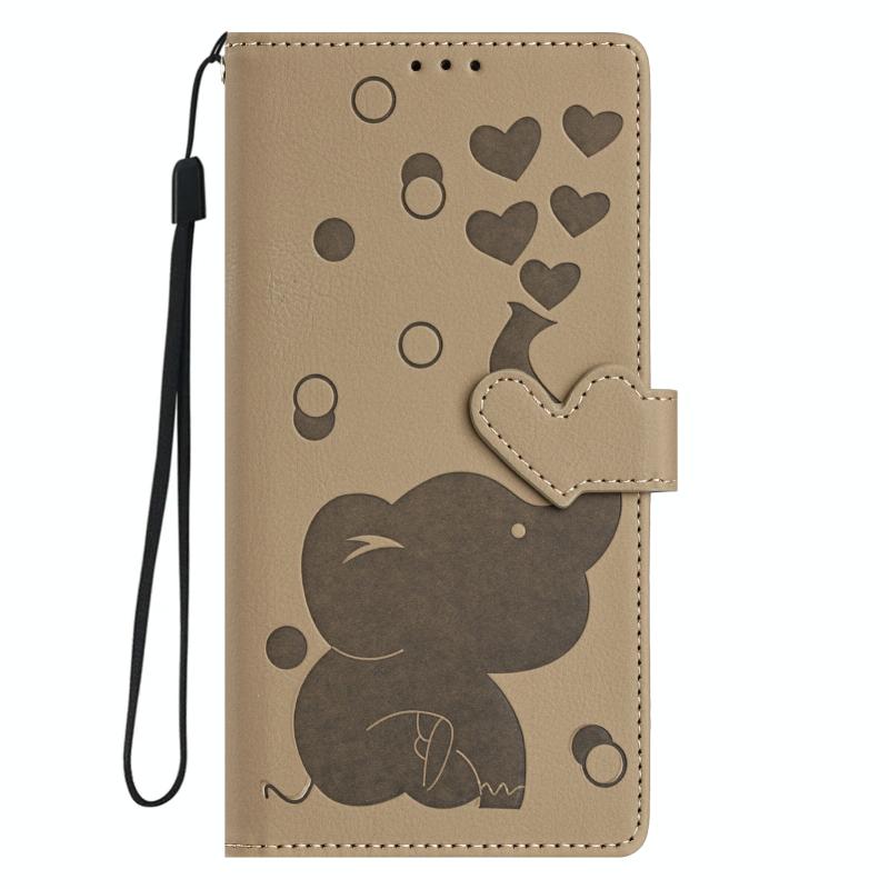 For Redmi Note 14 Pro 5G Cartoon Elephant Embossed Leather Phone Case(Khaki)