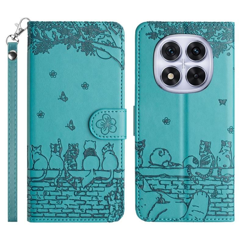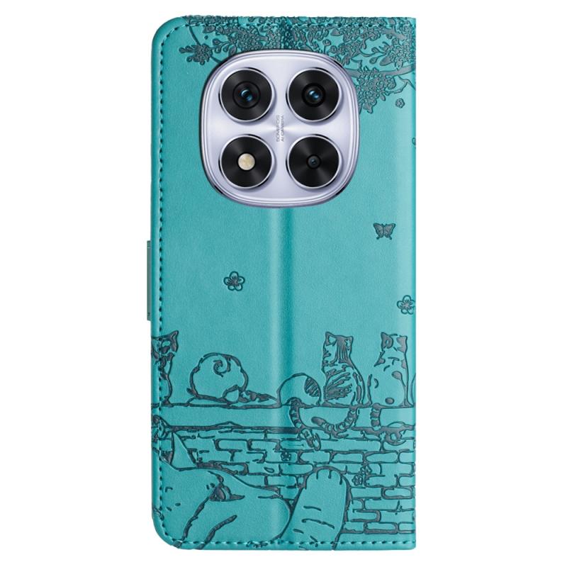 For Redmi Note 14 Pro 5G Cat Embossing Pattern Leather Phone Case with Lanyard(Blue)