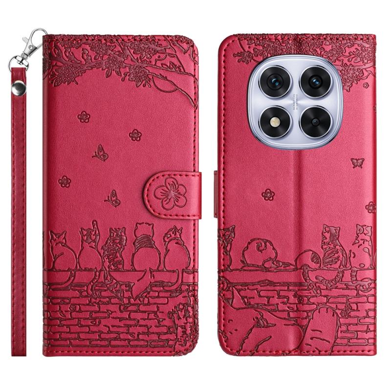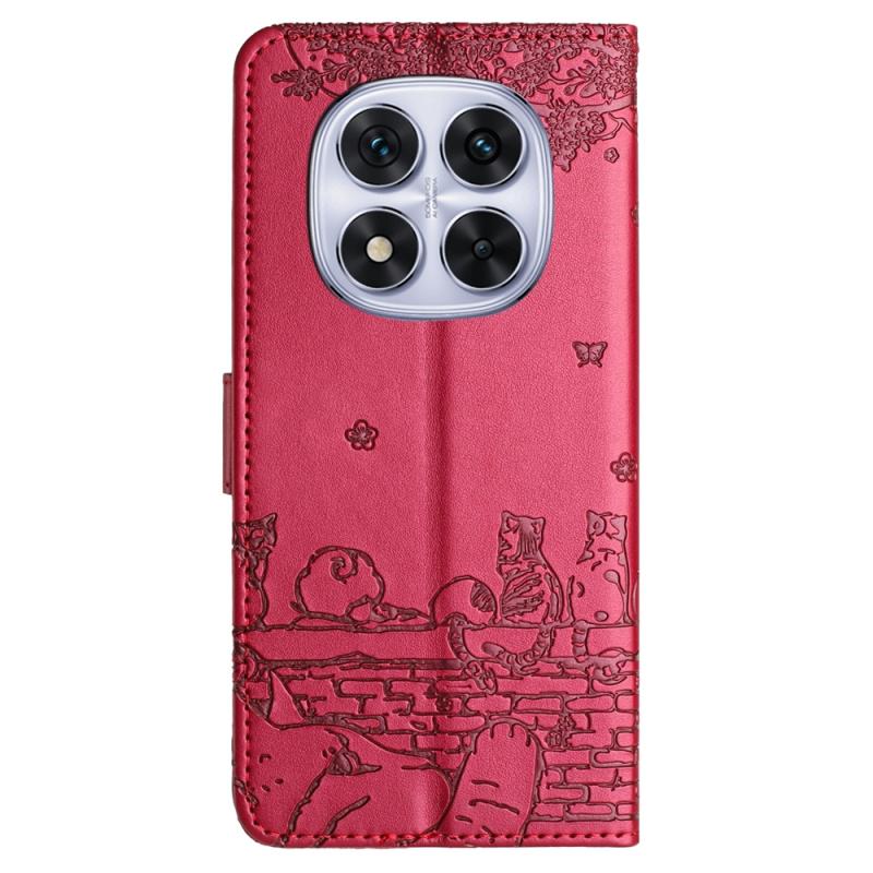 For Redmi Note 14 Pro 5G Cat Embossing Pattern Leather Phone Case with Lanyard(Red)
