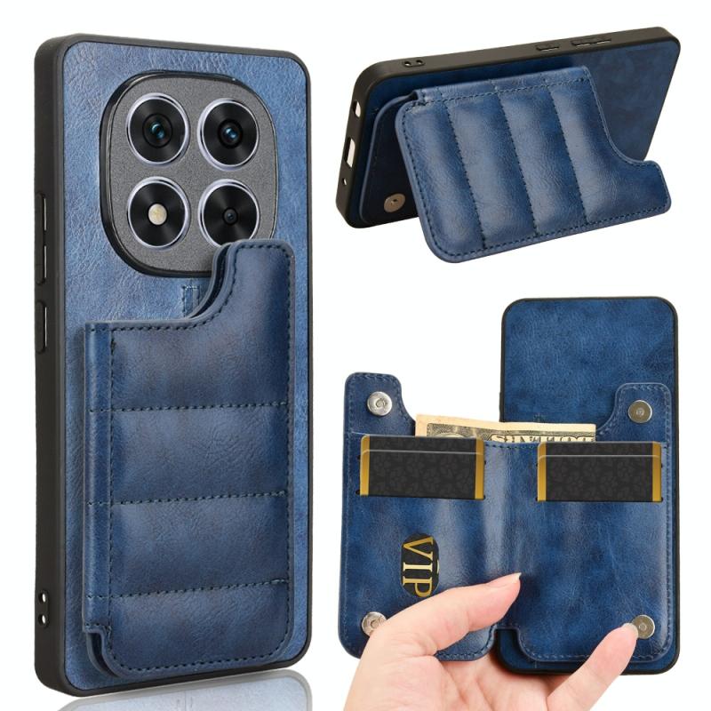 For Redmi Note 14 Pro 5G Cow Pattern Sewing Card Bag Phone Case(Blue)