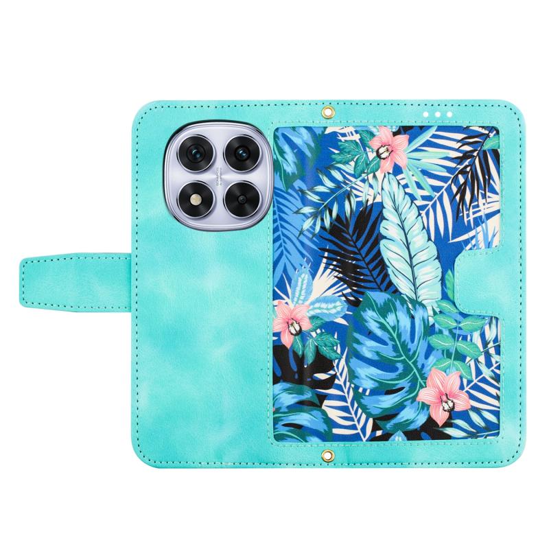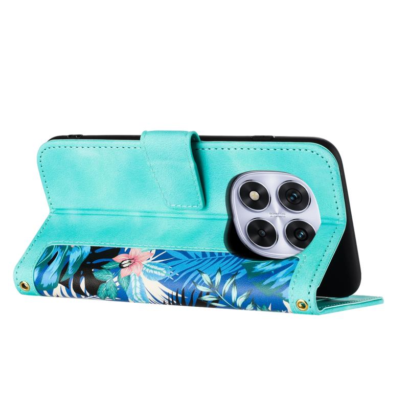 For Redmi Note 14 Pro 5G Floral Pattern Leather Phone Case with Lanyard(Green)
