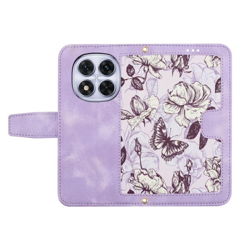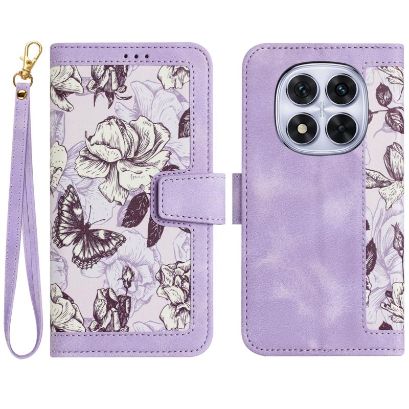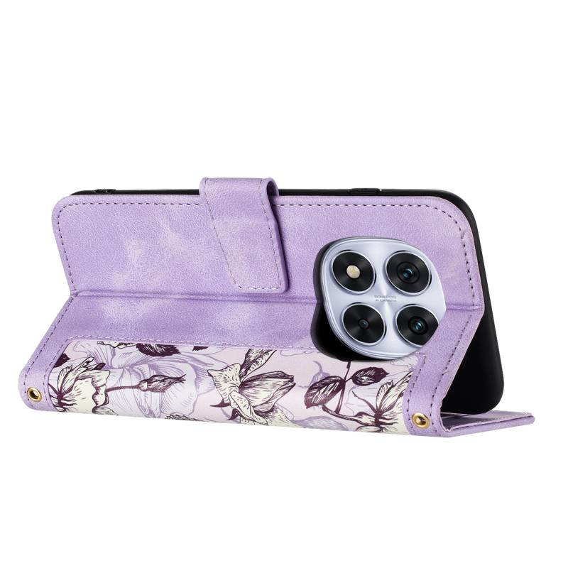 For Redmi Note 14 Pro 5G Floral Pattern Leather Phone Case with Lanyard(Light Purple)