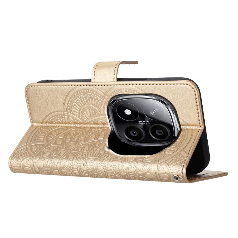 For Redmi Note 14 Pro 5G Flower Embossed Leather Phone Case(Gold)