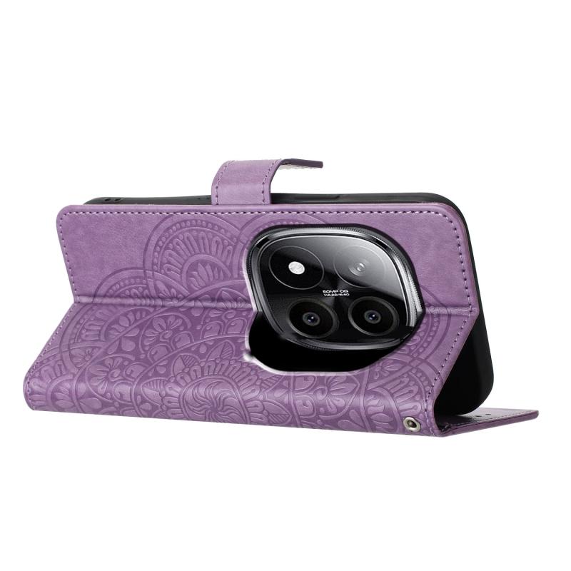 For Redmi Note 14 Pro 5G Flower Embossed Leather Phone Case(Purple)