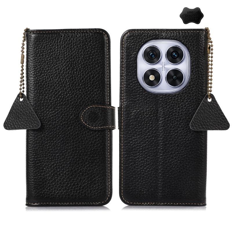 For Redmi Note 14 Pro 5G Genuine Leather Litchi Texture RFID Leather Phone Case(Black)