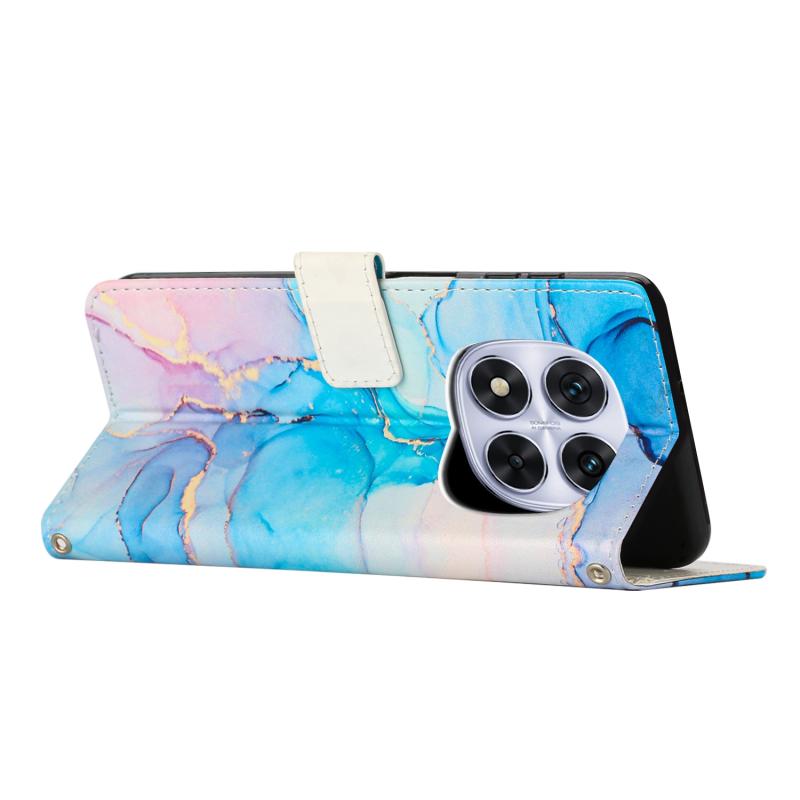 For Redmi Note 14 Pro 5G Global Painted Marble Pattern Leather Phone Case(Pink Green)