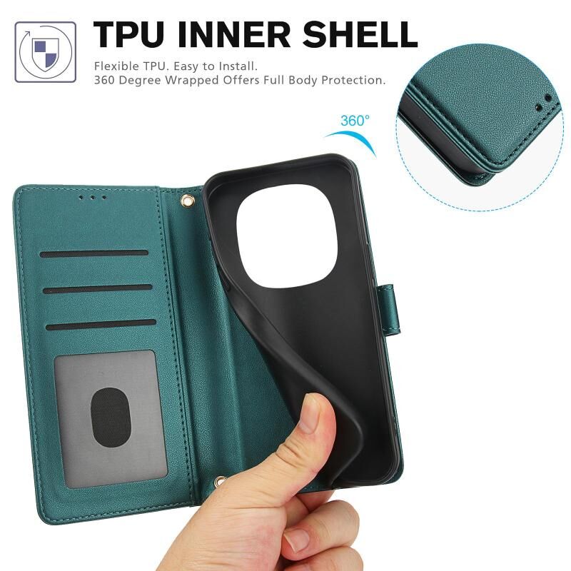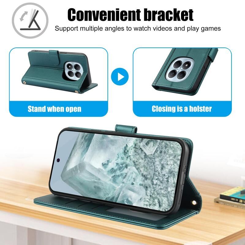 For Redmi Note 14 Pro 5G Global Skin Feel Pure Color Card Slots Leather Phone Case with Dual Lanyard(Green)