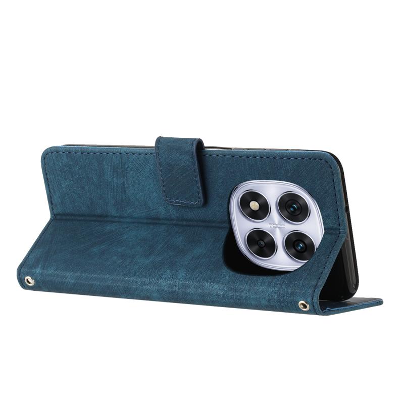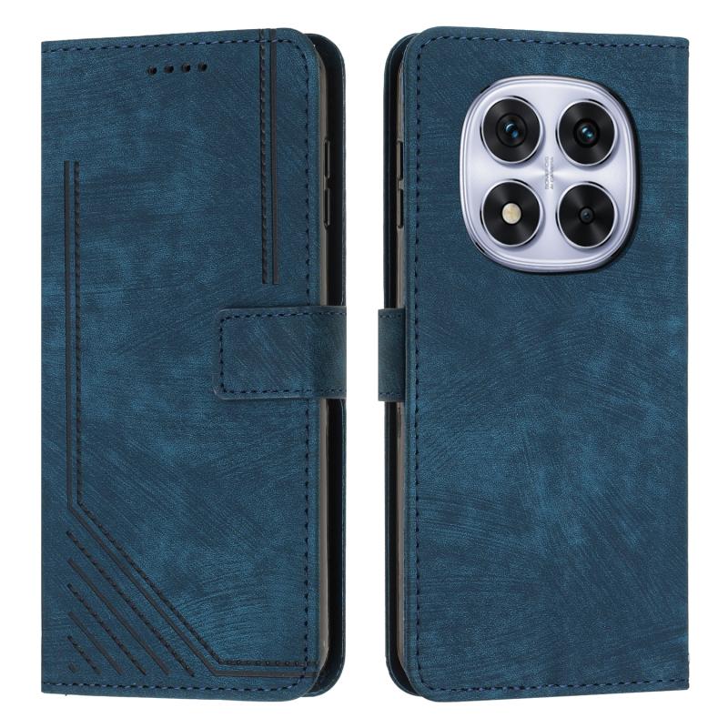 For Redmi Note 14 Pro 5G Global Skin Feel Stripe Pattern Leather Phone Case with Long Lanyard(Blue)