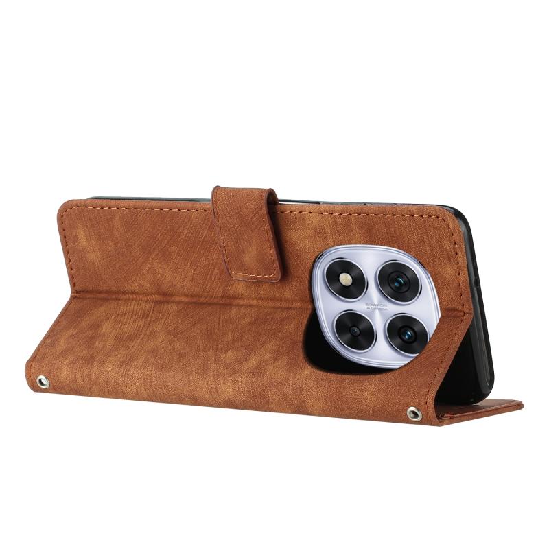 For Redmi Note 14 Pro 5G Global Skin Feel Stripe Pattern Leather Phone Case with Long Lanyard(Brown)