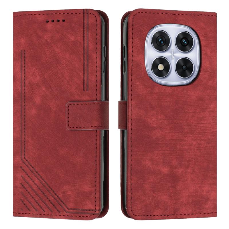 For Redmi Note 14 Pro 5G Global Skin Feel Stripe Pattern Leather Phone Case with Long Lanyard(Red)