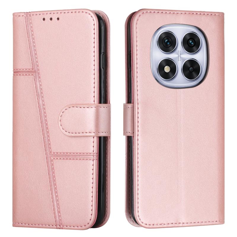 For Redmi Note 14 Pro 5G Global Stitching Calf Texture Buckle Leather Phone Case(Rose Gold)