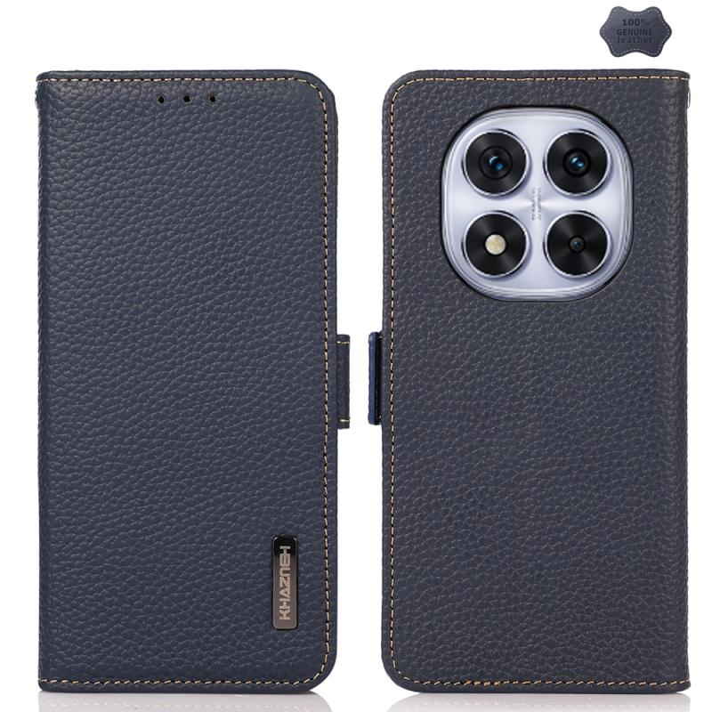For Redmi Note 14 Pro 5G KHAZNEH Side-Magnetic Litchi Genuine Leather RFID Phone Case(Blue)