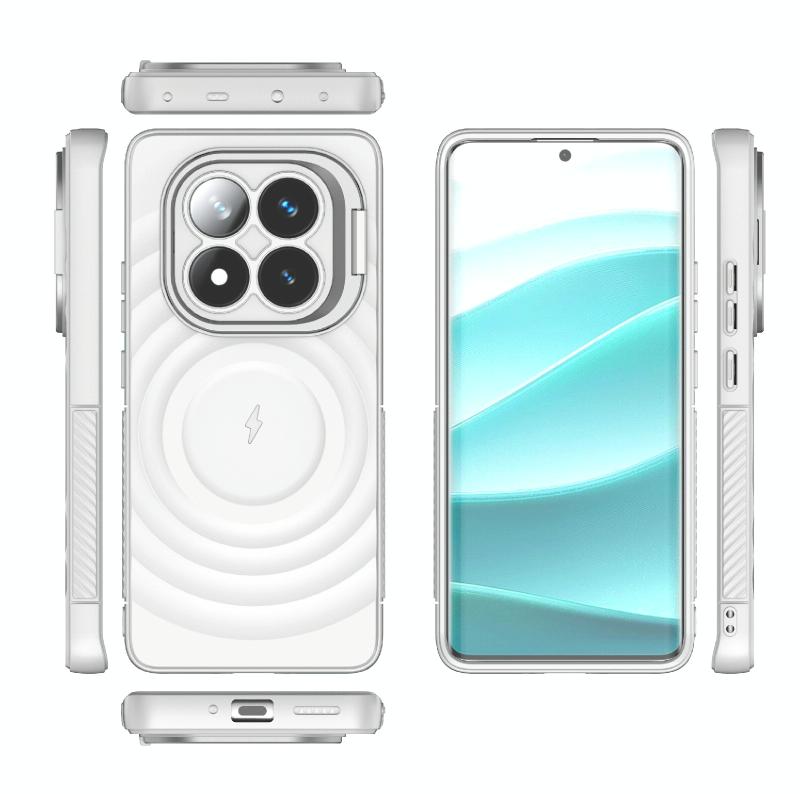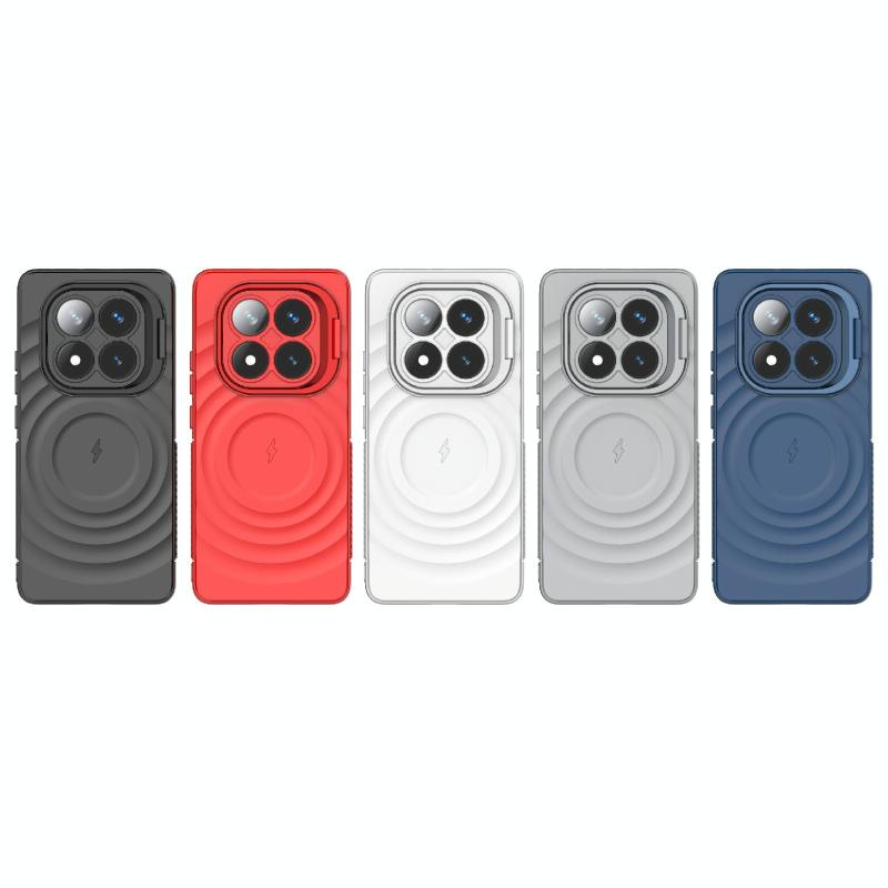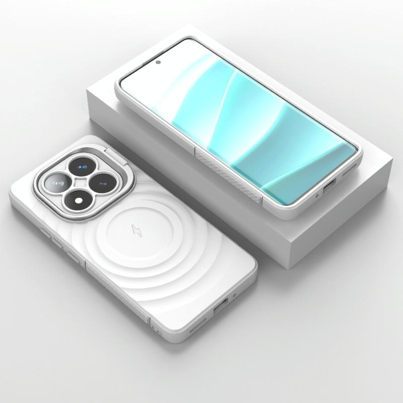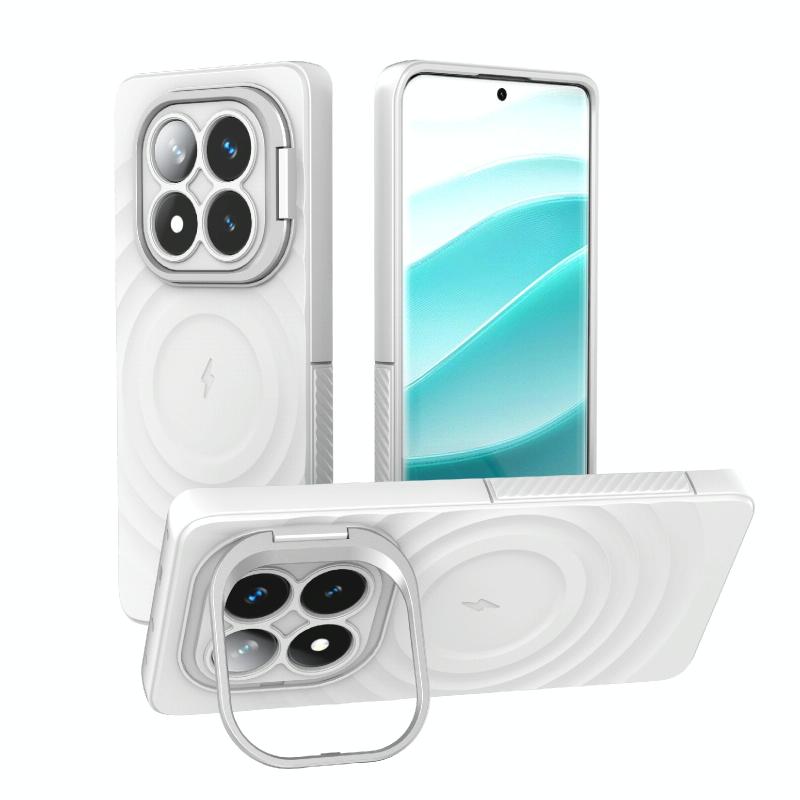 For Redmi Note 14 Pro 5G Lens Frame Bracket Corrugated MagSafe Phone Case(White)