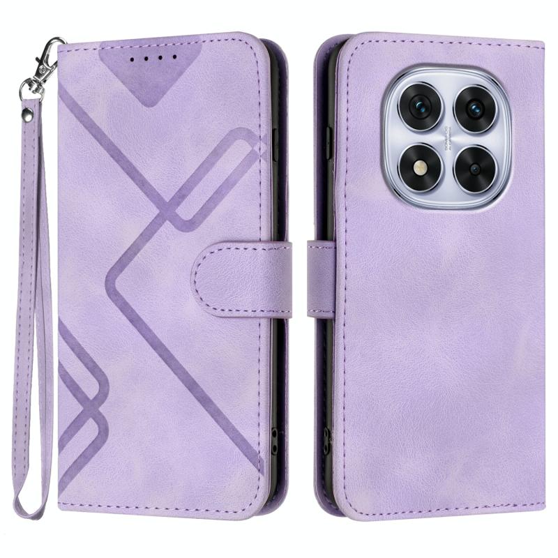 For Redmi Note 14 Pro 5G Line Pattern Skin Feel Leather Phone Case(Light Purple)