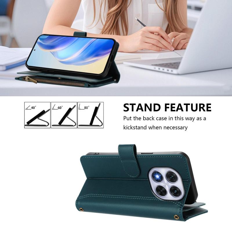 For Redmi Note 14 Pro 5G Magnetic Closure 9 Card Slots Zipper Leather Case with Hand Strap(Dark Green)