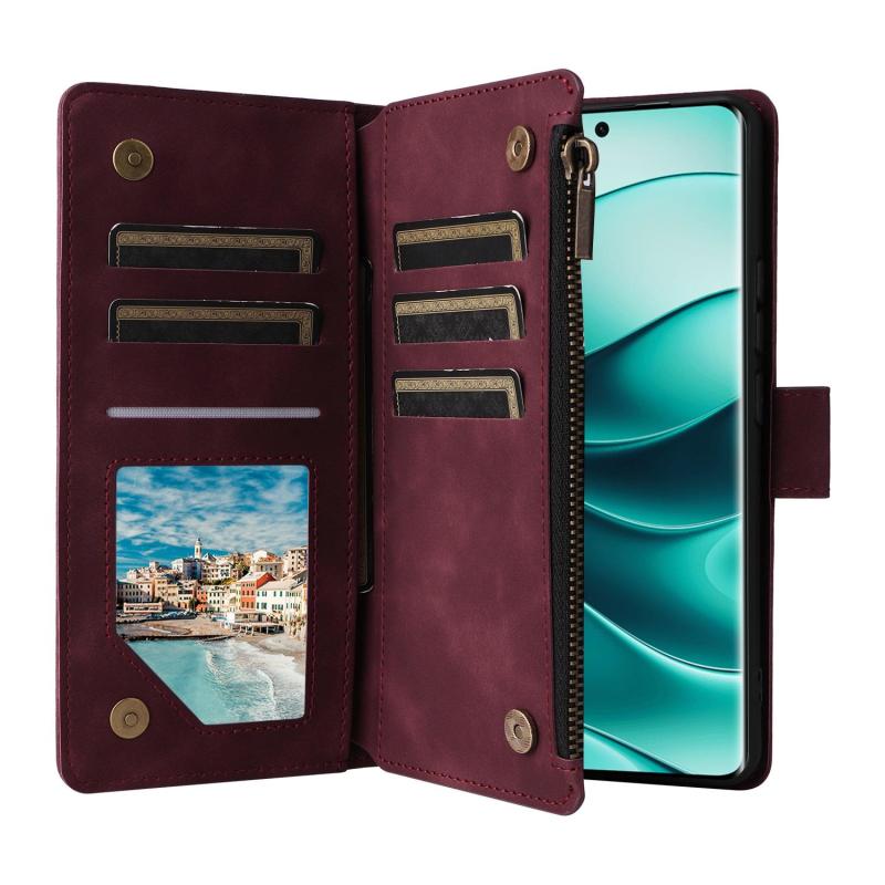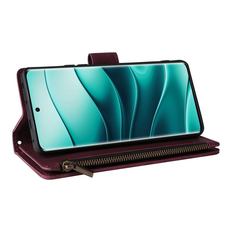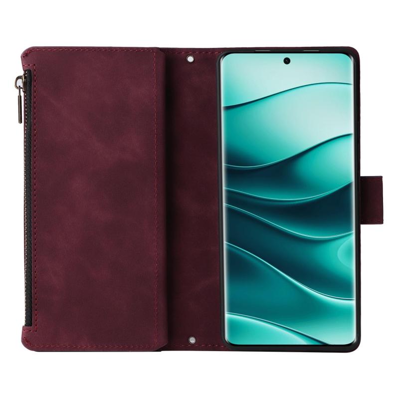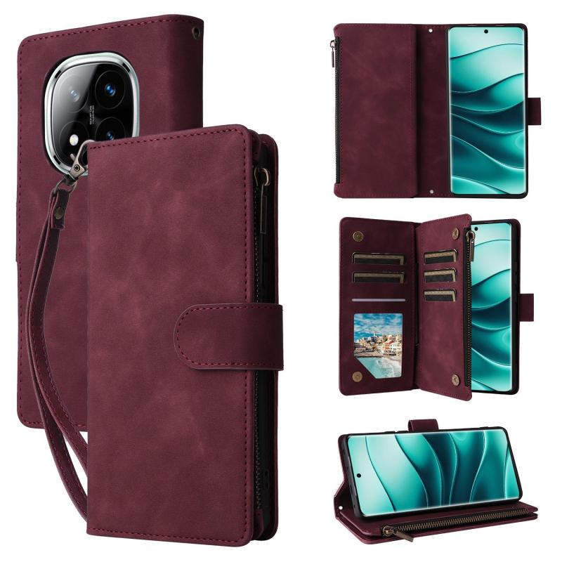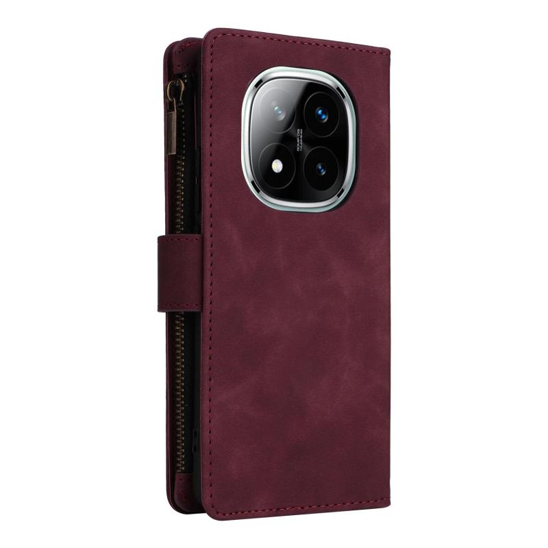 For Redmi Note 14 Pro 5G Multifunctional Frosted Zipper Wallet Leather Phone Case(Wine Red)