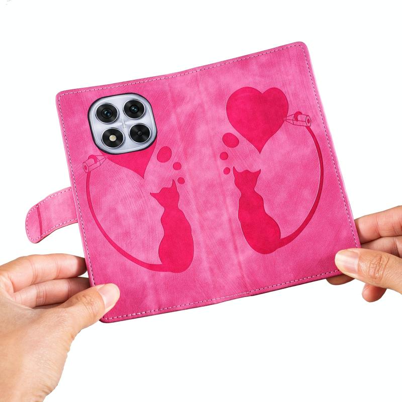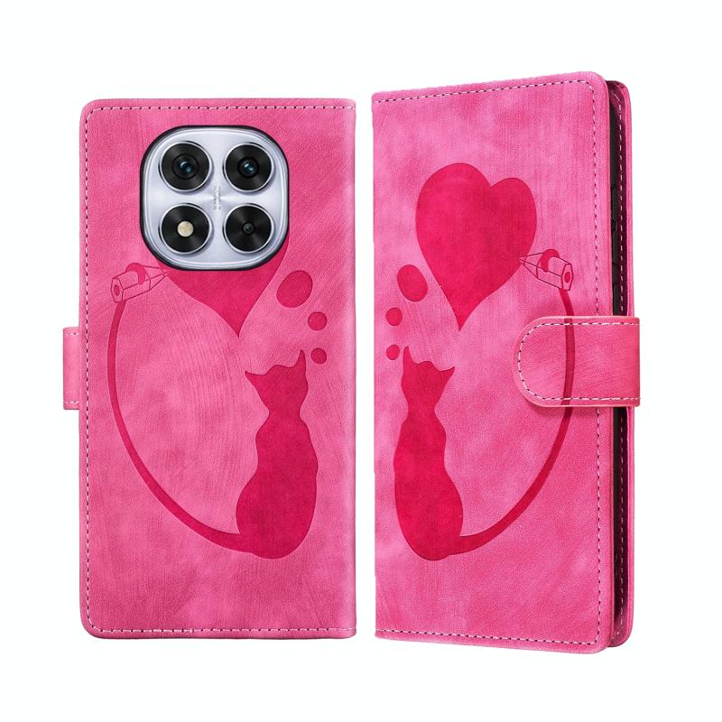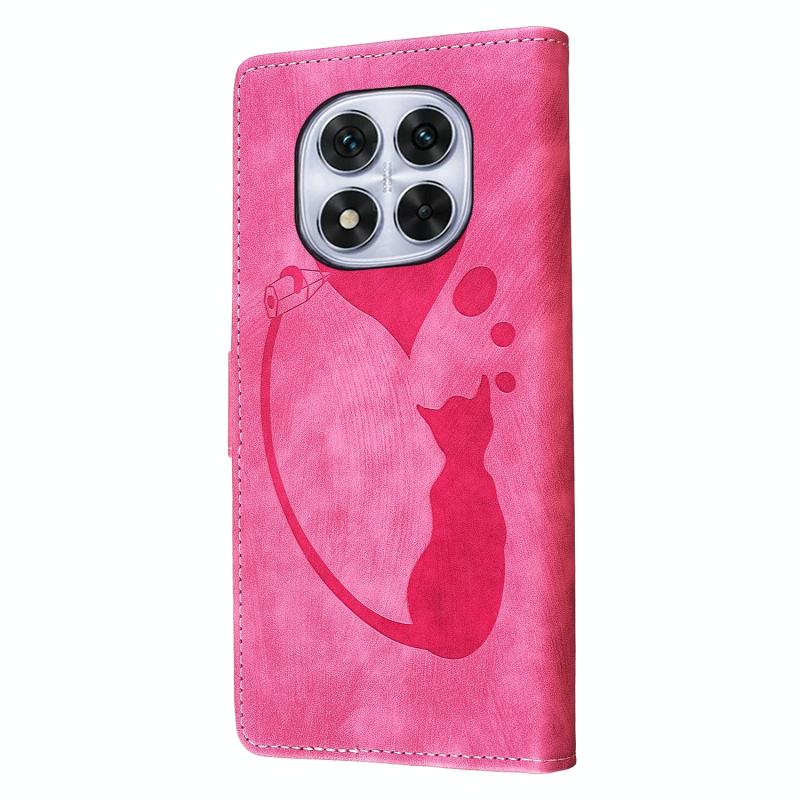 For Redmi Note 14 Pro 5G Pen Heart Cat Embossed Leather Phone Case(Pink)