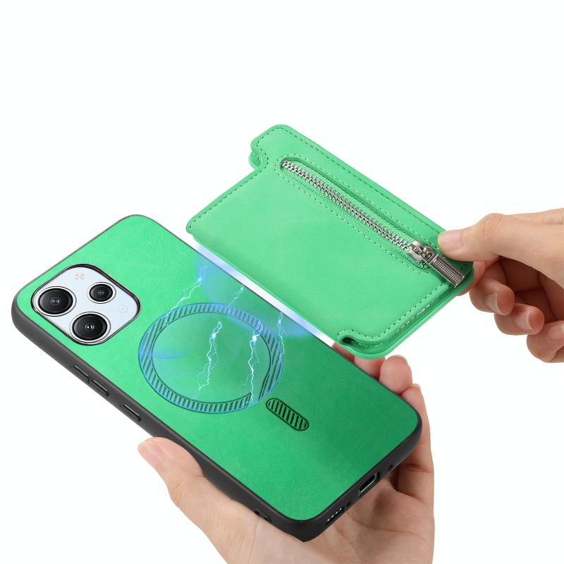 For Redmi Note 14 Pro 5G Retro MagSafe Zipper Wallet Card Bag Back Phone Case(Green)