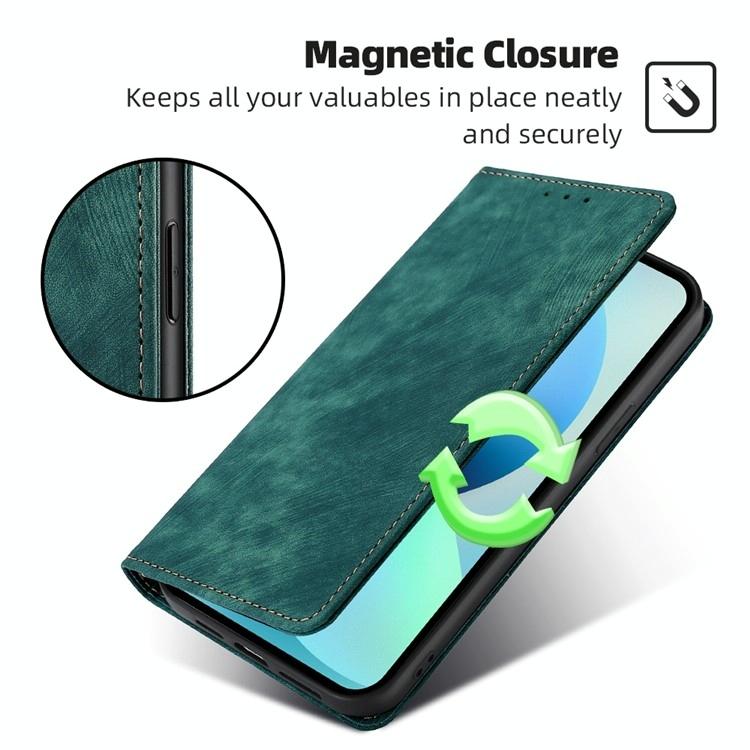 For Redmi Note 14 Pro 5G RFID Anti-theft Brush Magnetic Leather Phone Case(Green)