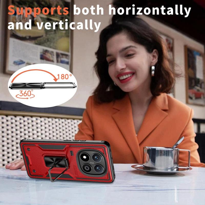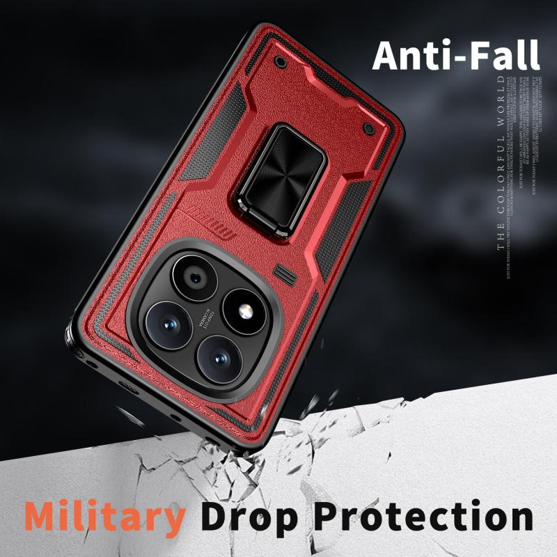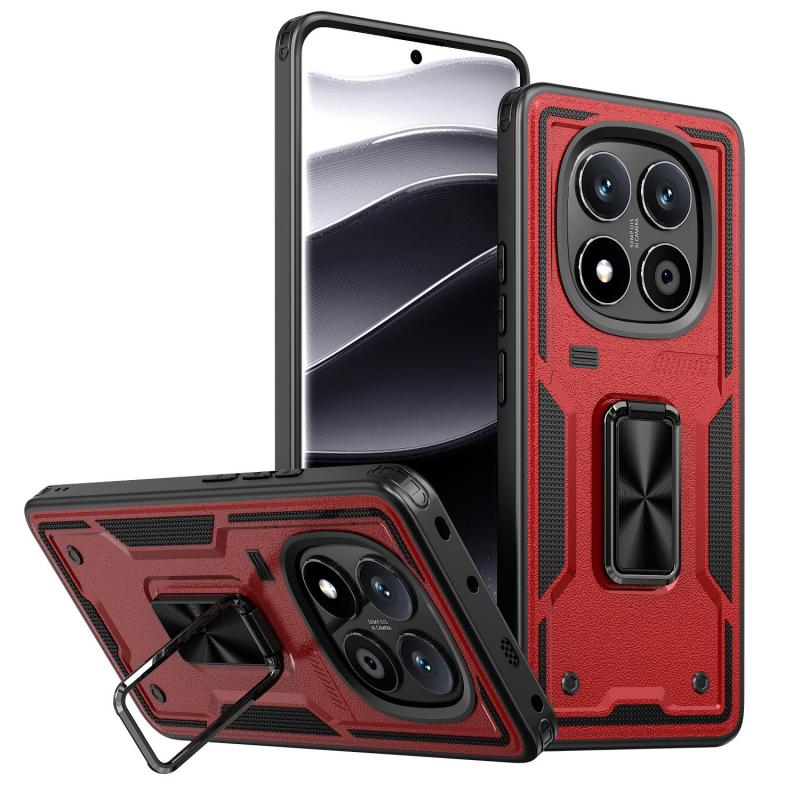 For Redmi Note 14 Pro 5G Ring Holder PC Hybrid TPU Phone Case(Red)
