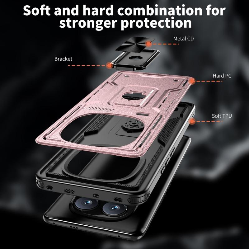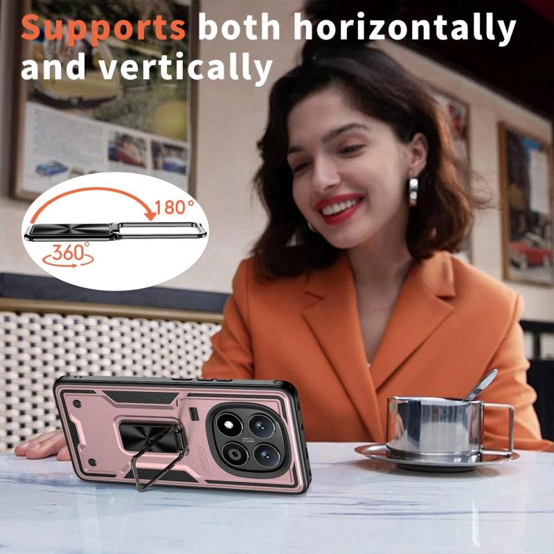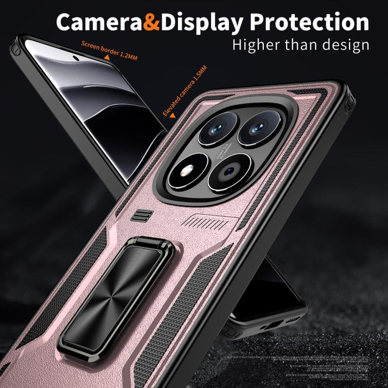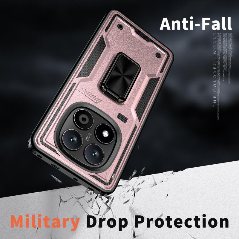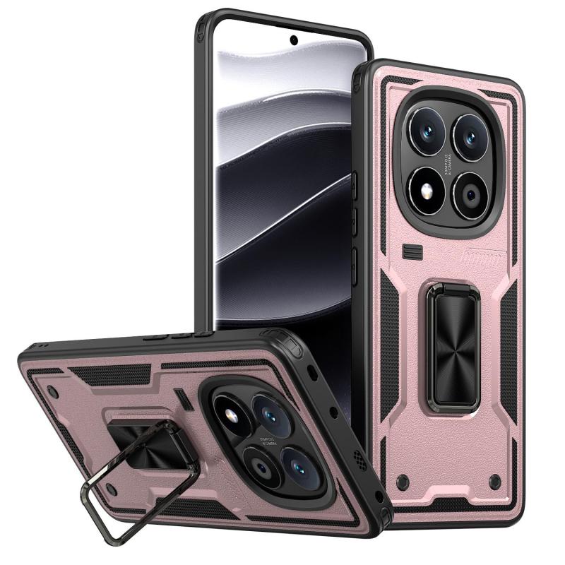 For Redmi Note 14 Pro 5G Ring Holder PC Hybrid TPU Phone Case(Rose Gold)
