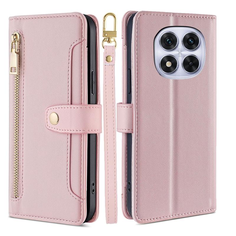 For Redmi Note 14 Pro 5G Sheep Texture Cross-body Zipper Wallet Leather Phone Case(Pink)