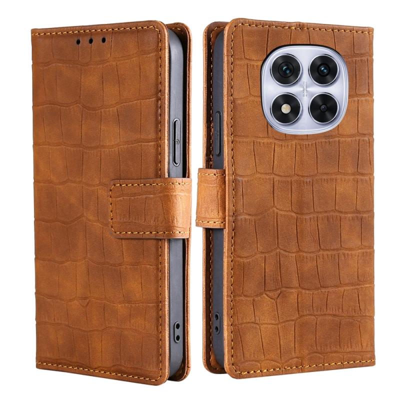 For Redmi Note 14 Pro 5G Skin Feel Crocodile Magnetic Clasp Leather Phone Case(Brown)