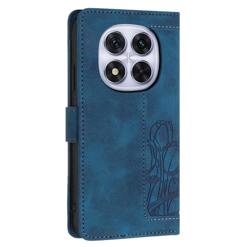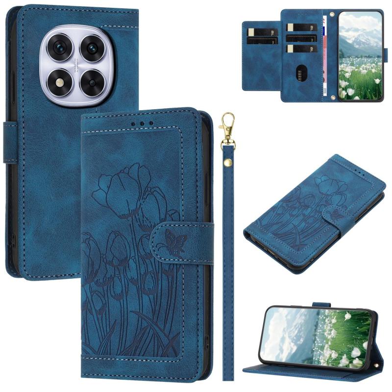 For Redmi Note 14 Pro 5G Tulips Embossed Leather Phone Case with Lanyard(Blue)