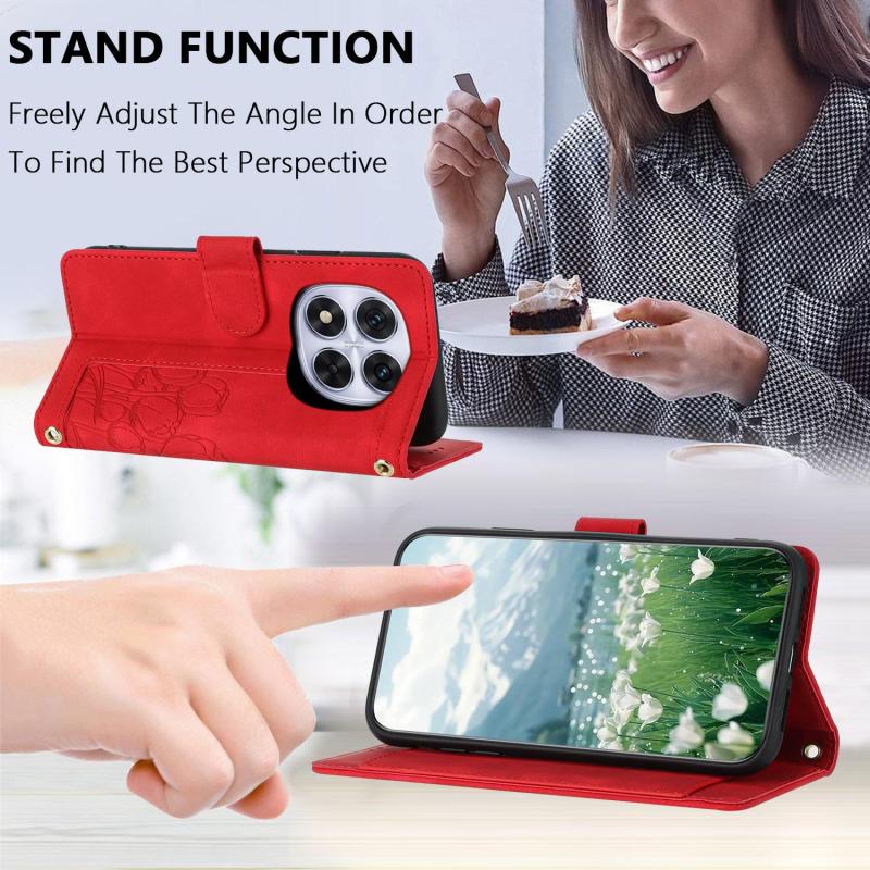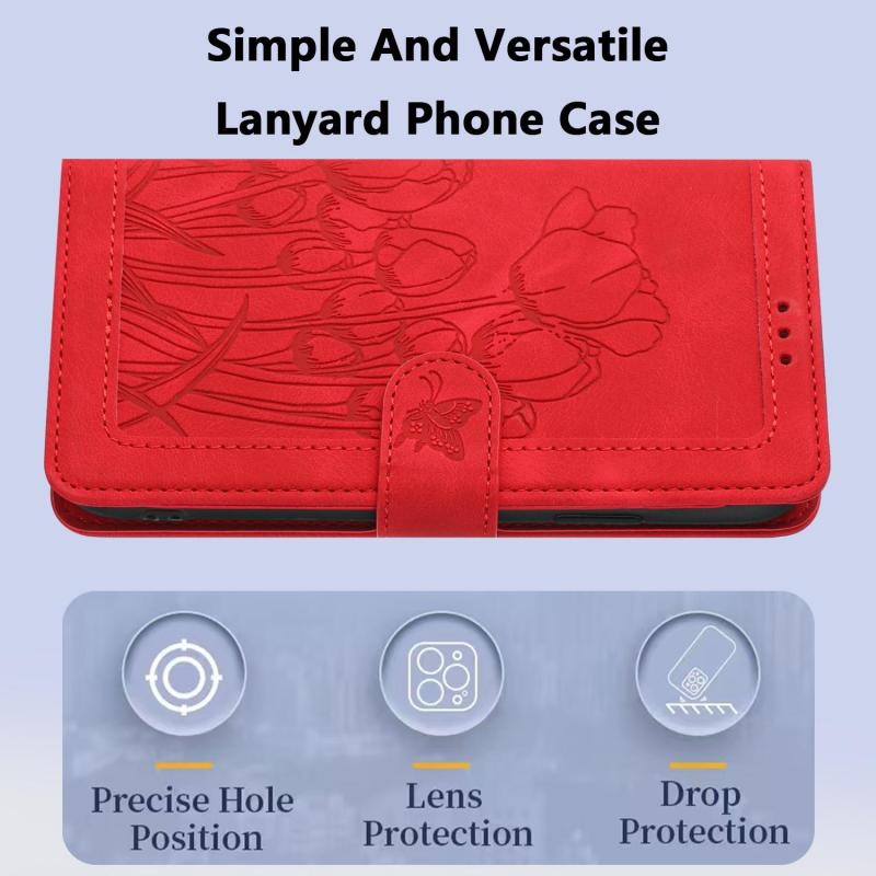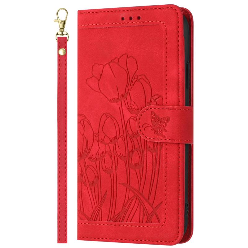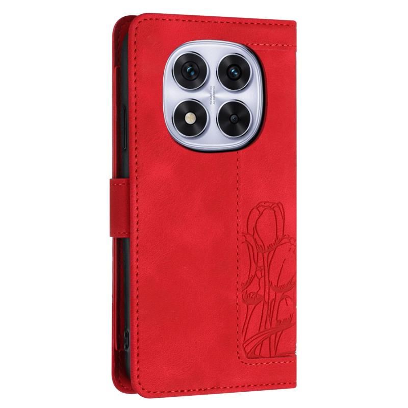 For Redmi Note 14 Pro 5G Tulips Embossed Leather Phone Case with Lanyard(Red)