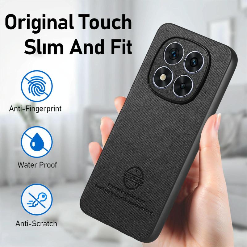 For Redmi Note 14 Pro 5G Twill Fabric Leather Skin Back Phone Case(Black)