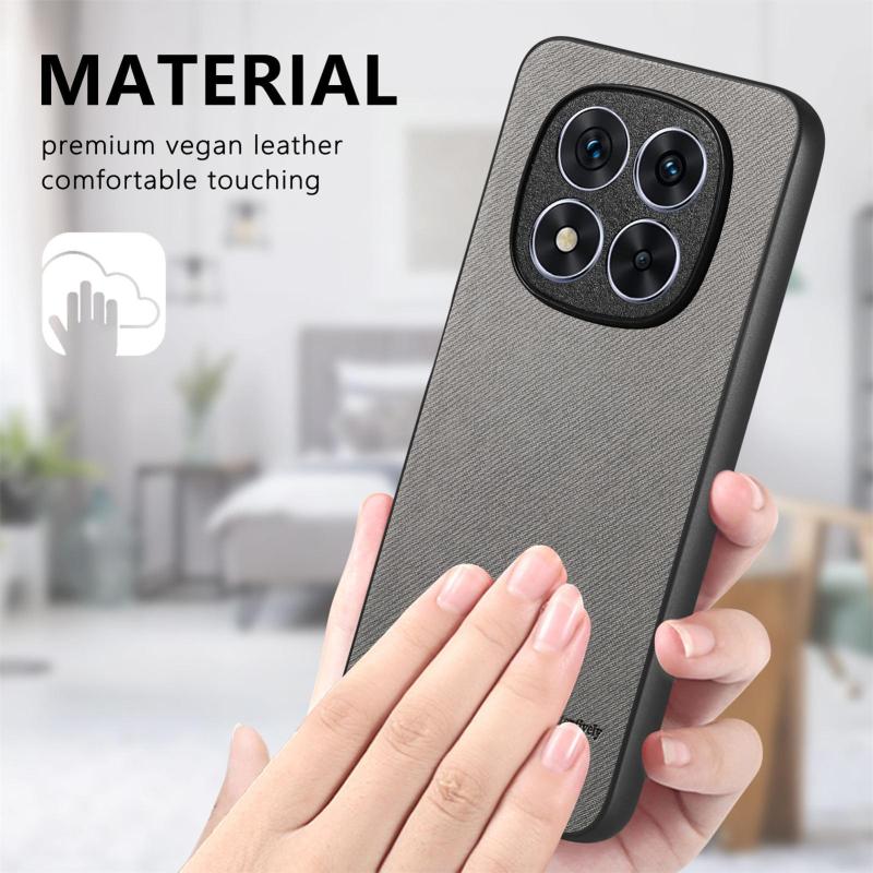 For Redmi Note 14 Pro 5G Twill Fabric Leather Skin Back Phone Case(Gray)