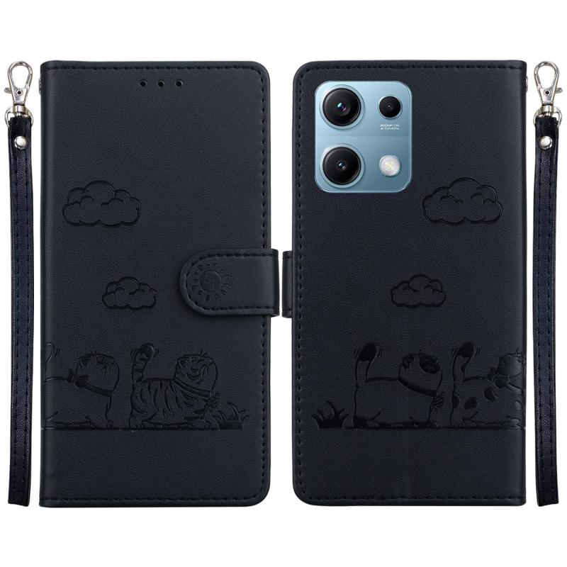 For Redmi Note 14S 4G Cute Cats RFID Leather Phone Case(Black)