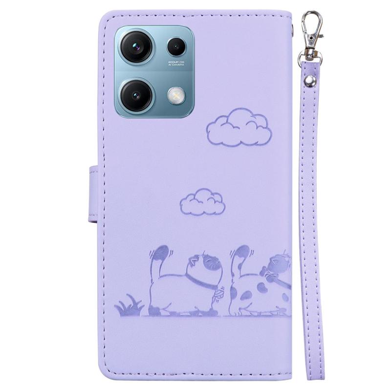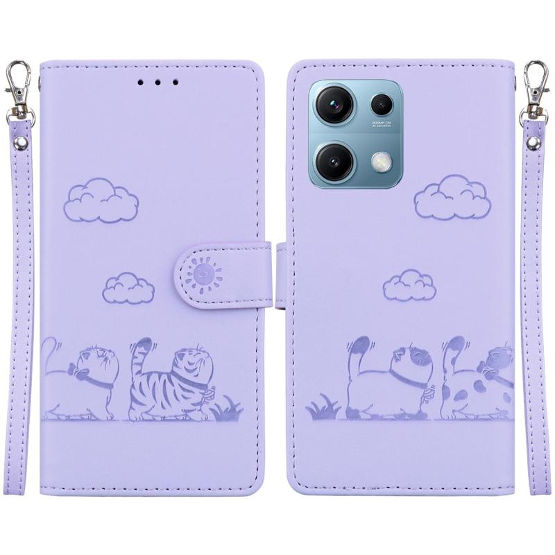 For Redmi Note 14S 4G Cute Cats RFID Leather Phone Case(Purple)