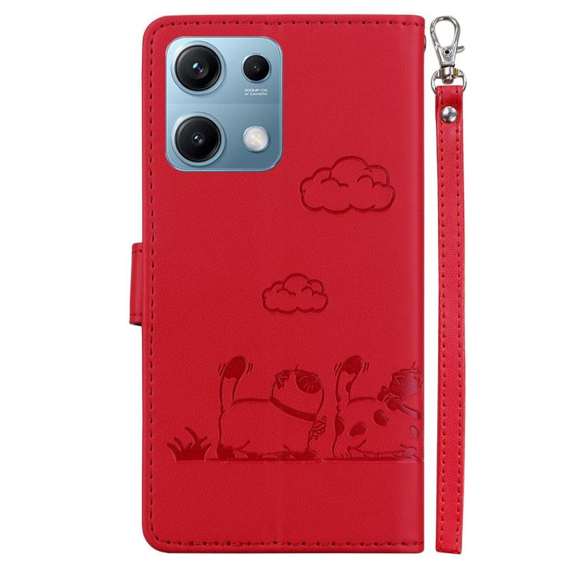 For Redmi Note 14S 4G Cute Cats RFID Leather Phone Case(Red)
