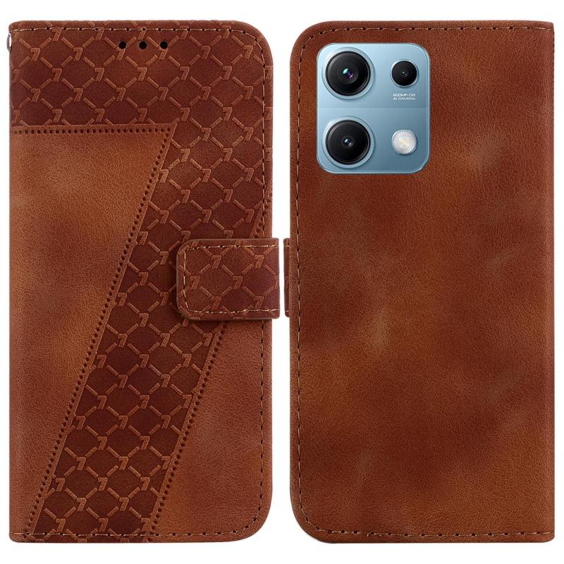 For Redmi Note 14S 4G Seven-shaped Embossed Leather Phone Case(Brown)