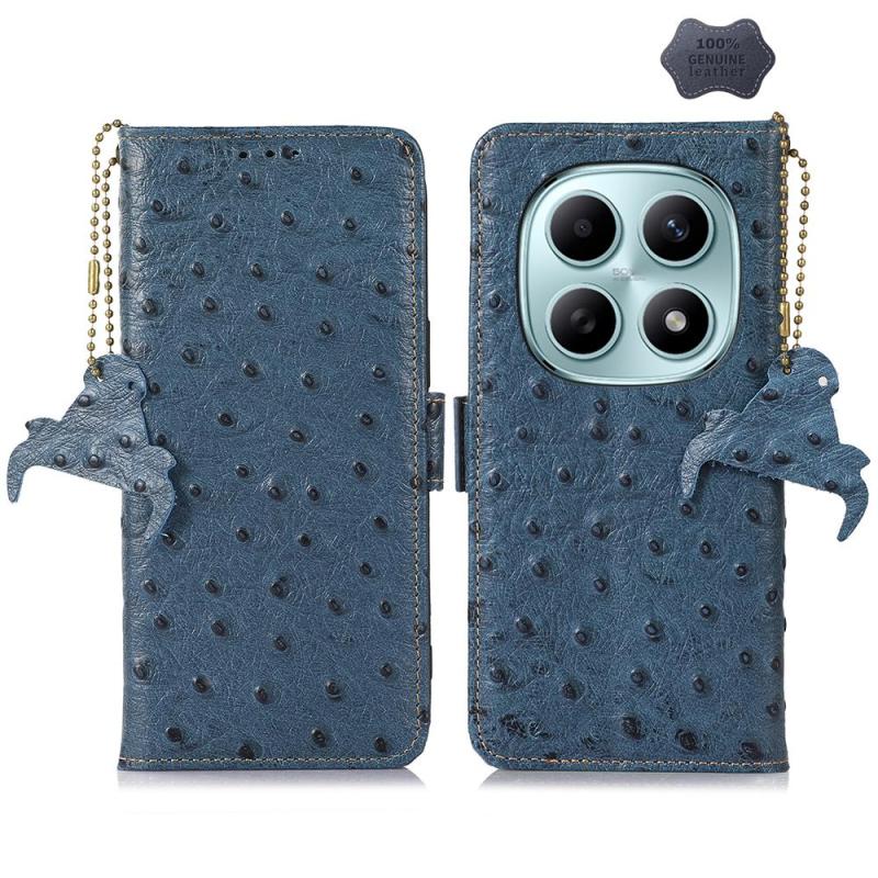 For Redmi Note 15 5G Global 164mm Ostrich Pattern Genuine Leather RFID Phone Case(Blue)